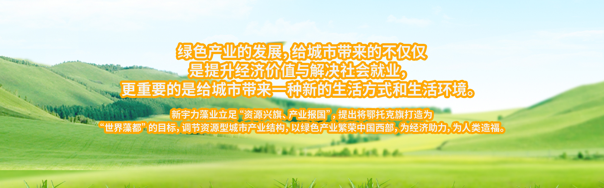 绿色产业的发展,给城市带来的不仅仅是提升经济价值与解决社会就业,更重要的是给城市带来一种新的生活方式和生活环境。 新宇力藻业立足“资源兴旗、产业报国”,提出将鄂托克旗打造为“世界藻都”的目标,调节资源型城市产业结构,以绿色产业繁荣中国西部,为经济助力,为人类造福。